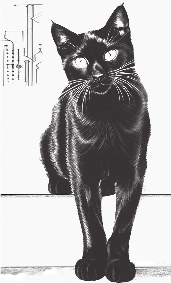 – Кот домашний, около года возрастом, – наговаривал под запись инспектор. – Короткошёрстный, абсолютно чёрного окраса. Глаза жёлтые. Круглый значок на шее животного изготовлен из алюминиево-литиевого сплава, гравировкой и чернью выведено «Фред». Предположительно – кличка животного. Чернение выполнено оксидом кобальта.