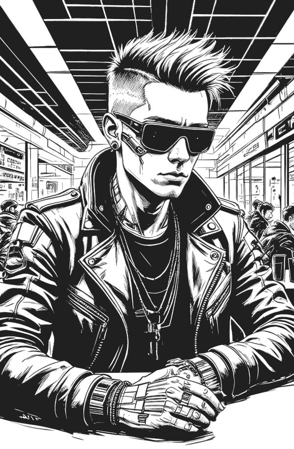 Я трогаю свою кожу – настоящую, без портов для зарядки – и думаю: «Блин, у меня даже подлинного айфона никогда не было, а тут у людей мозги напрямую подключены к облаку». В ушах шум: гремит музыка из ближайшего клуба, реклама орёт про скидки на импланты, а сквозь это всё пробивается голос синтетического ассистента, который назойливо предлагает купить улучшенную версию себя. Вдруг кто-то толкает плечом: девушка с фиолетовыми волосами, с киберрукой и с голыми ногами, обвитыми светящимися подвижными татухами, бросает: «Эй, аналоговый, не торчи на прошивке». А я даже не знаю, оскорбили меня или сделали комплимент. Ноги сами несут в переулок, где стены облеплены рекламными голограммами: они шепчут вслед, как навязчивые попрошайки. Я наступаю в лужу, но там не вода, а какая-то маслянистая жижа, светящаяся ярко-зелёным. Вдруг сверху падает дрон-курьер, чуть не задевает меня, а из-за угла выходит фигура в плаще с капюшоном. «Ищете особенных развлечений?» – голос звучит так, будто его пропустили через гитарный усилитель. Я открываю рот, чтобы сказать «нет», но понимаю: здесь любой изданный мною звук может стать подтверждением контракта. И в этот момент ловлю себя на мысли, что страх смешивается с восторгом – потому что в этих дебрях информации, проводов, стекла и стали я впервые чувствую, что живу на полную. Хотя бы до тех пор, пока меня не отсканировали на предмет совместимости с Чёрным рынком.