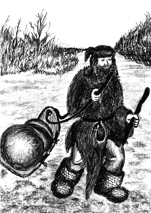 На широкой лыже – плахе, политой снизу водой на морозе для лучшего скольжения, привязаны кули муки. Через плечо перекинута лямка.