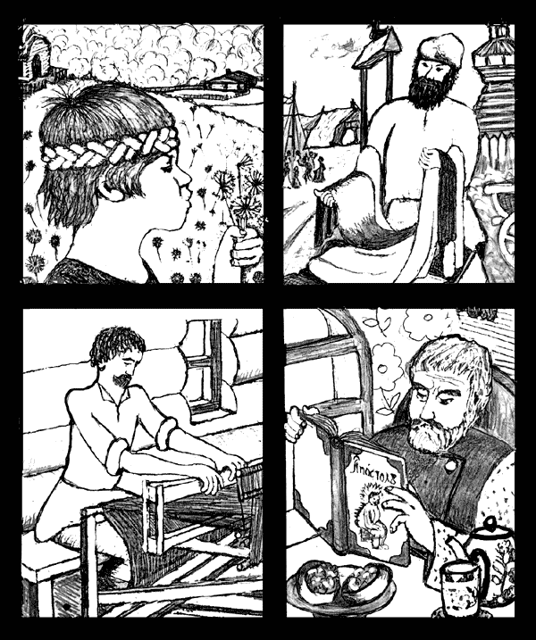 Много лет назад какой-то боярин вывез его из Новгорода на Вагу для росписи церкви в вотчине. Да случилось, язычники спалили строение. И побрёл Пров откуда слухом доносит.