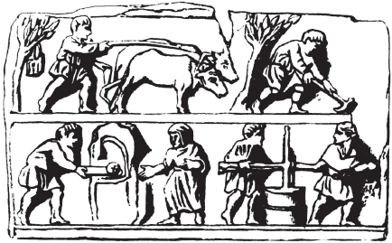 Почтение, каким в Риме пользовался земледельческий труд, неудивительно, если иметь в виду, что в Ранней республике даже многие патриции вели простой образ жизни и оставались, по существу, крестьянами, которые владели небольшими участками земли и сами их обрабатывали, нисколько не стыдясь своей честной бедности. Напротив, древних героев Рима всегда прославляли за их бедность и трудолюбие. Идеал доблестного воина и скромного земледельца воплощал, например, Луций Квинкций Цинциннат. Происходя из знатного патрицианского рода, он был консулом в 460 г. до н. э. и дважды после этого назначался диктатором, но владел всего лишь четырьмя югерами (около 1 гектара) земли и жил в жалкой хижине. Рассказывают, что когда его в первый раз назначили диктатором, чтобы спасти Рим от угрозы со стороны сабинян, прибывшие посланники застали Цинцинната за обработкой земли – он то ли копал канаву, то ли пахал свое маленькое поле. Другой прославленный полководец, трижды консул Маний Курий Дентат заслужил восхищение современников и потомков тем, что, расширив границы римских владений, он довольствовался крохотным земельным участком и сам обрабатывал его, как любой рядовой гражданин. А однажды к нему пришли посланцы разбитых им самнитов и предложили в подарок золото. Выслушав их, Дентат показал им на репу, которую сам варил себе на обед в горшке, и заявил, что пока он сыт таким обедом, ему не надо золота: он предпочитает иметь власть над имеющими золото. Говоря о доблестях и честности, часто вместе с Денататом римляне упоминали Гая Фабриция, который после того, как был консулом и цензором и дважды справлял триумф, умер в такой бедности, что сенату пришлось обеспечить его дочь приданым из государственной казны.