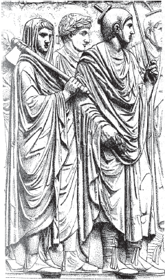 Тога – верхняя национальная римская одежда, представлявшая собой большой кусок ткани, который особым образом надевали на тело. Туника – длинная рубаха, надевавшаяся под тогу.