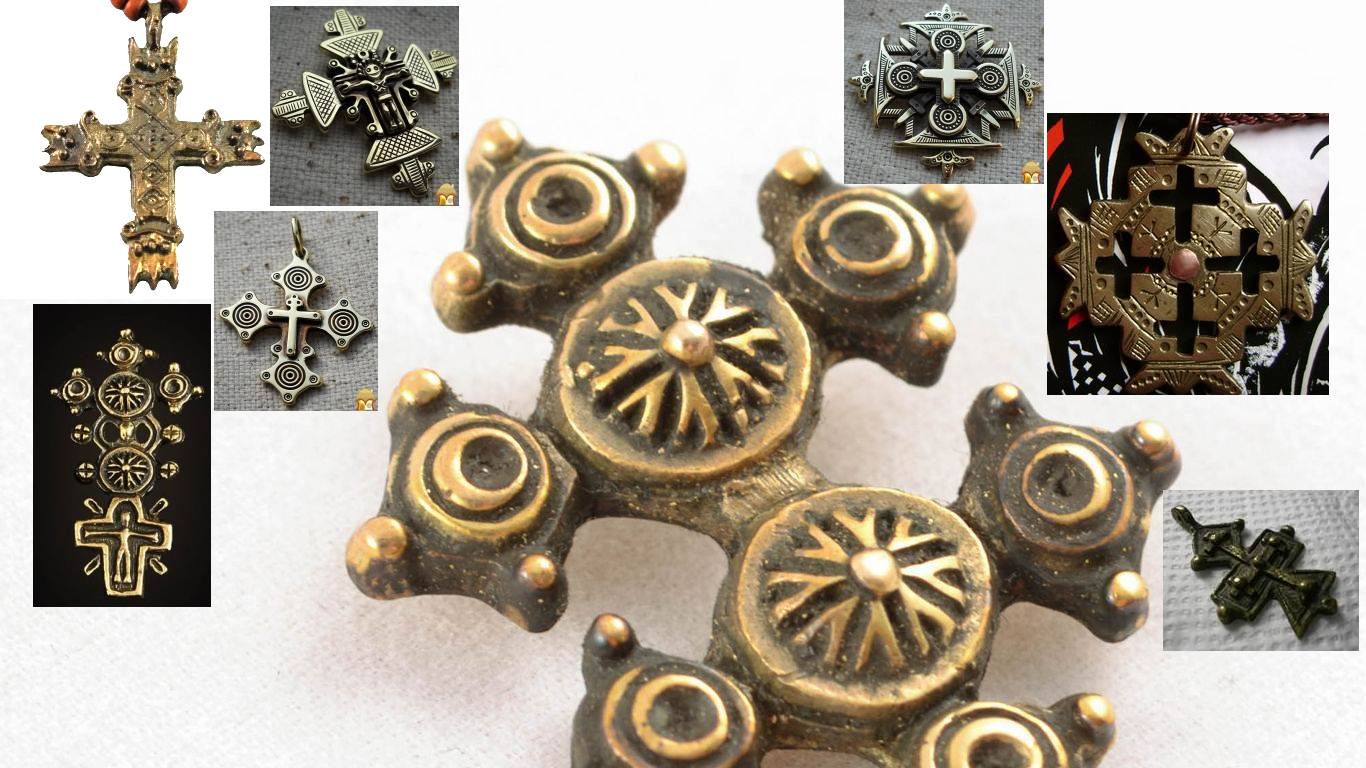 Первоначально кресты в наши земли привозились из Византии.Стоил такой заморский символ веры не дешево. Мастера из Закарпатья сами начали отливать кресты внося в них местные древние элементы. Вероятно тоже происходило в Эфиопии. Посмотрите на сколько похожи бывают гуцульские и эфиопские кресты.
