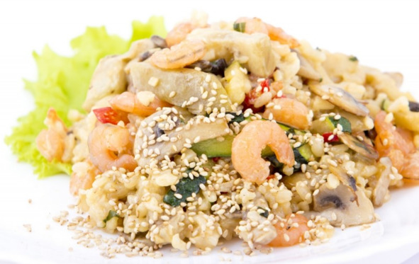 Рис с овощами и креветками