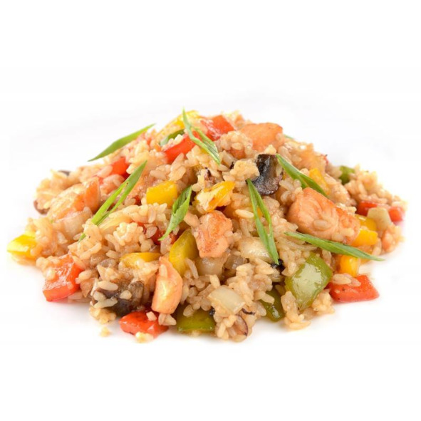 Рис с овощами и лососем