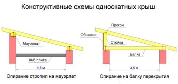 Перекрытие крыши одним единым скатом позволит сэкономить нервы и материалы, поскольку конструктивно это самый простой вариант. Если сделать такой каркас самостоятельно, то трудоемкость работы будет наименьшей, а скорость монтажа высокой. Но такая форма имеет недостаток – отсутствует возможность обустройства полноценного чердака или мансарды, поскольку подкровельное пространство получается слишком низким.