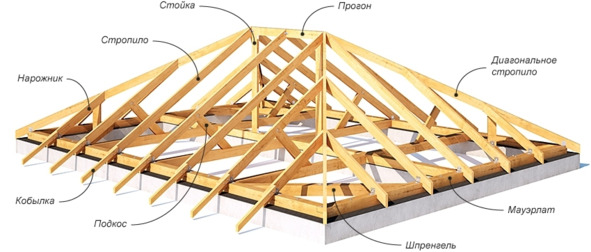 Перед тем как приступить к самостоятельному возведению крыши с четырьмя скатами, потребуется серьезно подготовиться. Такая система имеет больше элементов по сравнению с двумя предыдущими. Кроме того, на мансарде нет возможности сделать полноценные окна, поскольку конструкция крыши лишена фронтонов и монтажа сложных мансардных или слуховых окон не избежать.