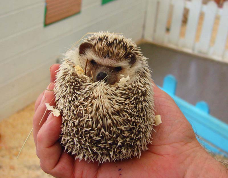 Недовольный ёж на ладошке
