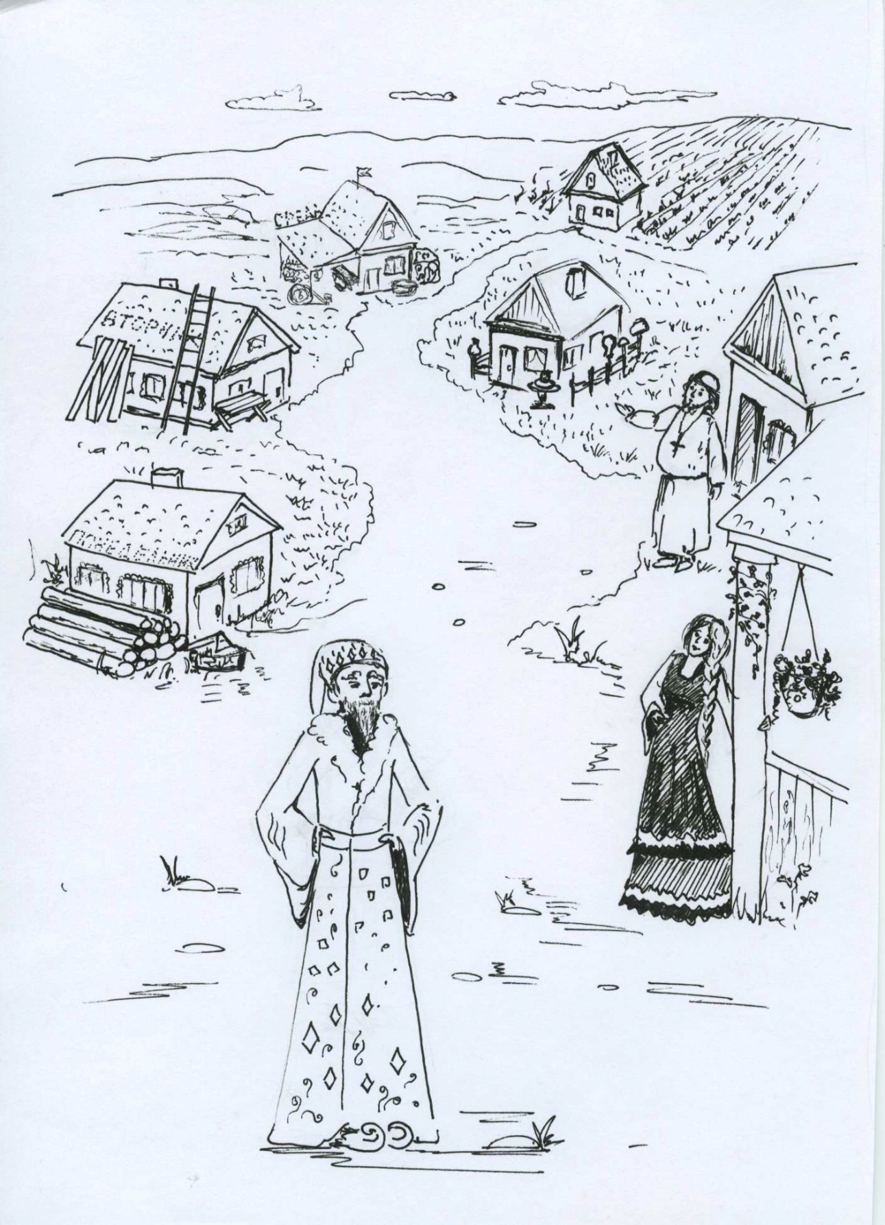 Долго слуги искали Неделю. Жил он далеко, за семью морями. Было у него семь теремов. В одном проживал лесоруб Понедельник, во втором жил плотник Вторник, в третьем – кузнец Среда, в четвертом – землепашец Четверг, в пятом – гончар Пятница, в шестом – поп Суббота. В седьмом тереме жила красавица Воскресенье.