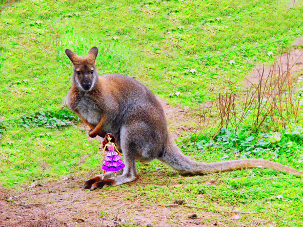 Вот кенгуру притаился у сетки,Девочка держит игрушку у ног,Только дырища зияет у клетки,Высынул ногу, хитрюга, как мог!Вот, кенгуру притаился у ветки,Девочка плачет, не знает игру.Лёша погладил малышку у клетки,Куклой играет большой кенгуру!