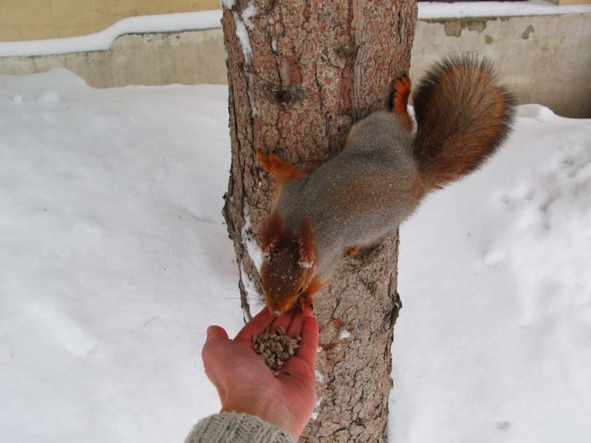 Поёт Маша.Белка, белка, белка,Скушай с ручки, Стрелка!Белка, белка, белка,Семечки так мелки!Белка, белка, белка,Убежала Стрелка!
