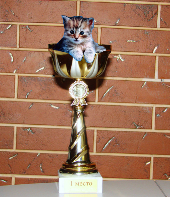 Лёша прыгал, прыгал,Он кубок получал,Антоша бегал, бегал,Котенка обучал.Котенок прыгал, прыгал,И в кубке он сидит,Алёша ножкой дрыгал,Котенок там глядит!