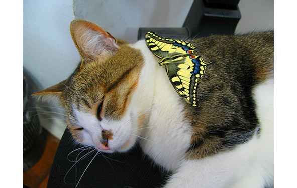 Поёт ЛёшаКотик дремлет, дремлет,На креслице лежит,Какой же обормотик!Он с бабочкой лежит!Котик Верный, Верный,Как вместе им тепло!Дают урок примерный,От дружбы всем светло!