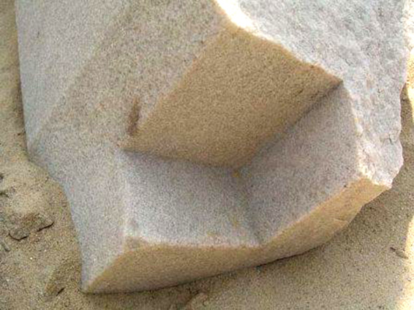Еще более странный гранитный блок лежит рядом с верхней площадкой комплекса Ольянтайтамбо в Перу. Одна из его боковых граней как бы разделена на две части разного цвета. Причем верхняя часть выступает по сравнению с нижней на миллиметр-полтора. И создается впечатление, как будто с поверхности нижней части сняли эти миллиметр-полтора материала просто рукой! По крайней мере, если рукой же провести по границе двух частей, то края пальцев очень гармонично проходят ровно вдоль границы. А подушечки пальцев даже ощущают неровности, соответствующие естественным колебаниям руки при таком движении. Но ведь речь идет о граните! Разный цвет двух частей камня наводит на мысль о возможном дополнительном неизвестным воздействии на поверхность.