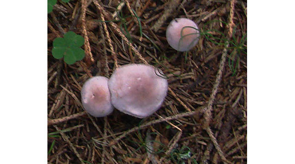 Пластинки редкие, беловато-серые, позже светло-сиреневые, могут иметь розоватый оттенок.