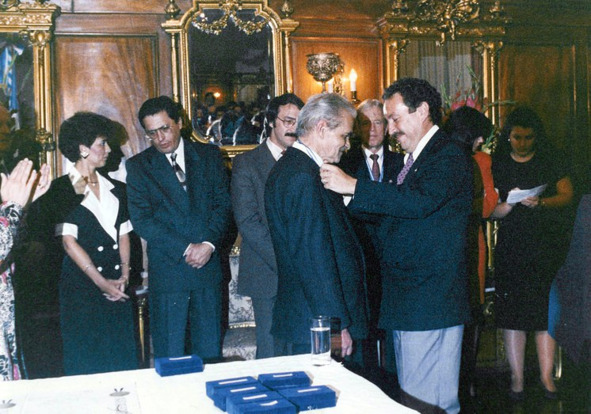 Рис. 3. Президент Гватемалы Винисио Сересо вручает Юрию Кнорозову Большую Золотую медаль Президента [118]