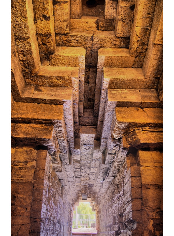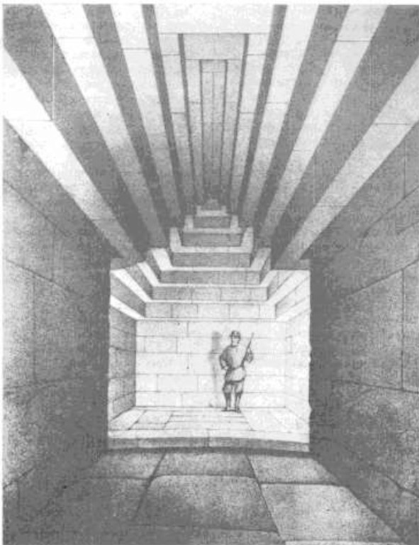 Если смотреть из камеры гробницы в сторону выхода, то создаётся впечатление, что коридор гораздо длиннее, чем на самом деле. Это происходит от того, что толщина блоков, из которых сложены стены, постепенно уменьшается к выходу.