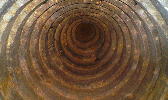 На кольцевой отвесной стене камеры располагался купольный уступчатый свод высотой 8 м. Купол был образован 14 рядами кладки, из которых каждый выступал над нижележащим рядом. Верхнее отверстие купола закрывала одна плита, положенная на кладку последнего уступа сверху. Высота камеры от пола до замыкающей «купол» плиты около 11 м.