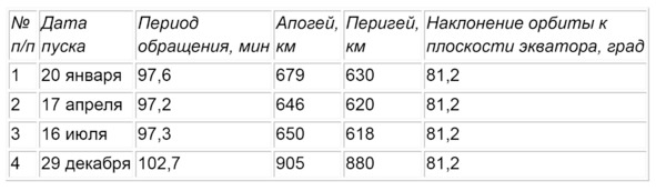 Таблица 1. Запуски спутников серии «Молния»