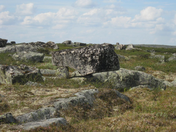 Рис. 24. Сейд, устанвленной ровной нижней поверхностью основного камня на каменный выступ основания [78]