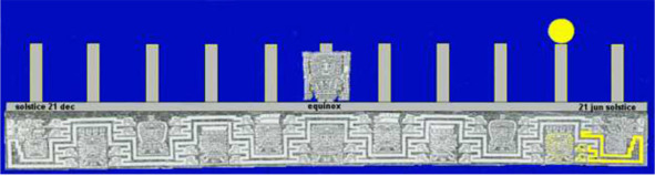 Солнце достигло столба в крайнем правом углу 21 июня, отмечая зимнее солнцестояние и Новый год Аймара. Тогда проводили великий праздник Инти Райми, солнце, кажется, стоит на месте.