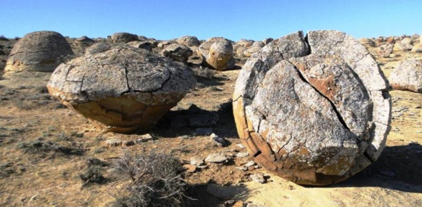 Казахстан. Долина шаров, в Мангыстауский области в примерно 100 км от г Актау [73] – рис 21. Долина шаров представляет собой поле, усеянное сотнями каменных глыб идеальной сферической формы различного размера от 30 см до 4 м в диаметре.