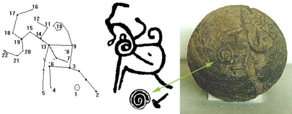 Рис. 49. Изображения, соответствующие карте звездного неба, высеченные на одном из шаров Коста-Рики [112]