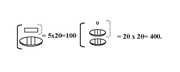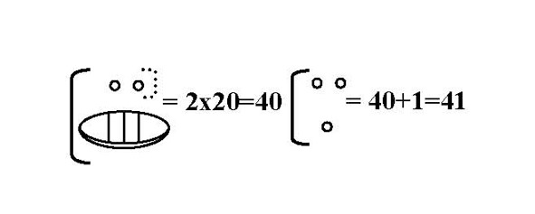 При вычислениях от 21 до 40 место двадцаток всегда заполняет точка, как в приведенном выше примере. Когда появляется вторая двадцатка, то в позиции двадцаток появляется две точки.