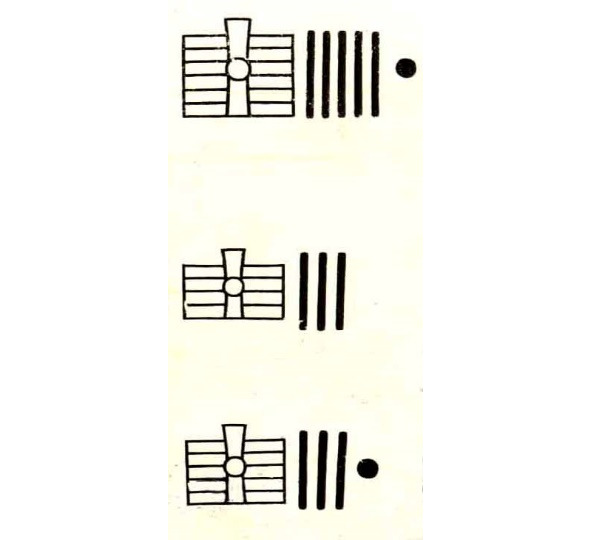 10 – то же, что и в предыдущем случае, но обозначено от кого (два стержня сверху – это признак Венеры) и для кого – 4 полоски – это признак Марса, в целом – война с участием представителей Венеры и Марса;