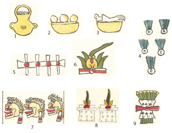 Рис. 15. Соответствие цифр майя и изображений в Кодексе Лауда