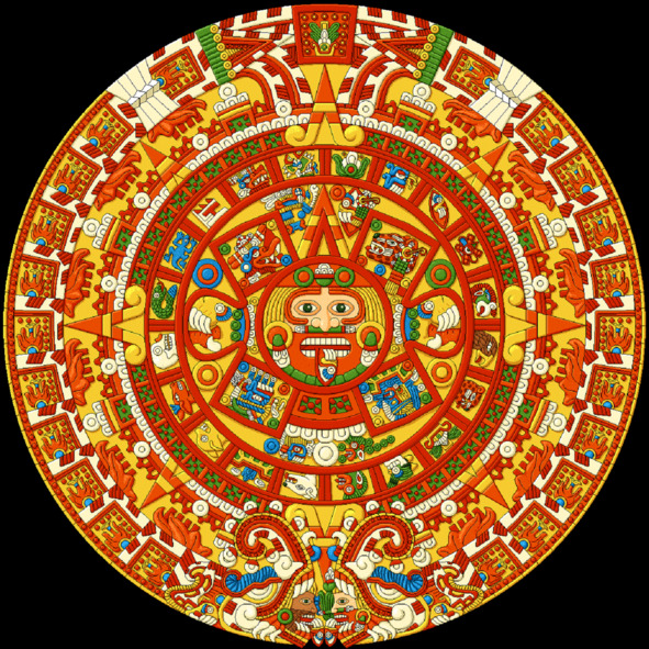 До 2012 года мы все жили в эре Пятого Солнца, главное божество – бог Солнца Тонатиу. Именно его лицо вы можете видеть в самом центре диска календаря майя – рис. 24.