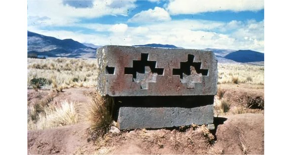 Рис. 27. Каменный блок, расположенный в Пума-Пунку (Тиуанако) с 4 -ступенчатыми взаимно перпендикулярными внутренними углублениями в два ряда [56]