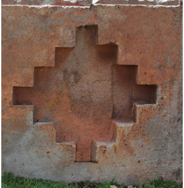 Рис. 28. Тиуанако. Блок с внутренними 8-ступенчатыми взаимно перпендикулярными ступенчатыми углублениями [57]