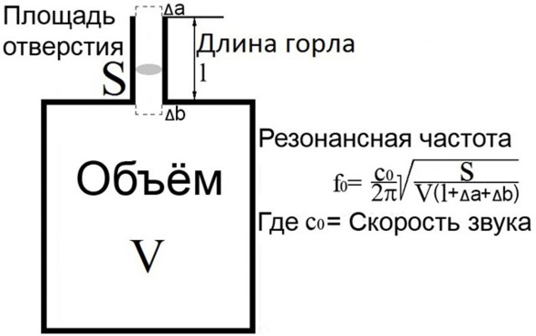 Рис. 21. К расчету резонансной частоты с объемом Гельмгольца [57]