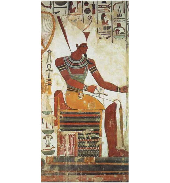 Рис. 75. Фараон на специальном звуковом троне с жезлом в руках