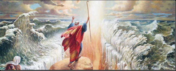 Рис. 79. Перед Моисеем раздвигаются воды моря