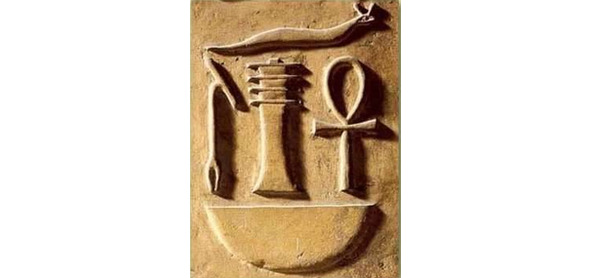 Рассматривая работу кромлеха, мы уже сталкивались с прототипом данного устройства – бронзовым крюком, своеобразным «детектором» сигнала. Здесь мы так же наблюдаем развитие технологии. Таскать с собой бронзовый крюк и резонатор в виде керамического кувшина было неудобно. К тому же, керамический кувшин хрупкая вещь, которую легко разбить. Это и привело к объединению этих технических элементов в одно устройство – анх. Символы, входящие в его первое изображение, более полно с физической точки зрения, раскрывают его назначение. Но для наглядности использования джеда и анха рассмотрим их древнее изображение.
