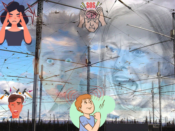 Рис. 1. Различные области воздействия психотронных устройств: вызов головной боли и стирание памяти, колики в голове и введение навязанных мыслей, приведение в состояние стресса, подавление собственного мнения, вызов экстрасенсорных свойств и состояния эйфории, вызов подавляющего страха.