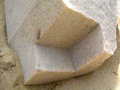 Причем верхняя часть выступает по сравнению с нижней на миллиметр-полтора. И создается впечатление, как будто с поверхности нижней части сняли эти миллиметр-полтора материала просто рукой! По крайней мере, если рукой же провести по границе двух частей, то края пальцев очень гармонично проходят ровно вдоль границы. А подушечки пальцев даже ощущают неровности, соответствующие естественным колебаниям руки при таком движении. Но ведь речь идет о граните! Разный цвет двух частей камня наводит на мысль о возможном дополнительном неизвестным воздействии на поверхность.