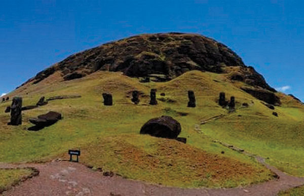 Рис. 18. Каменоломня Рано Рараку, где изготавливали каменные статуи [121]