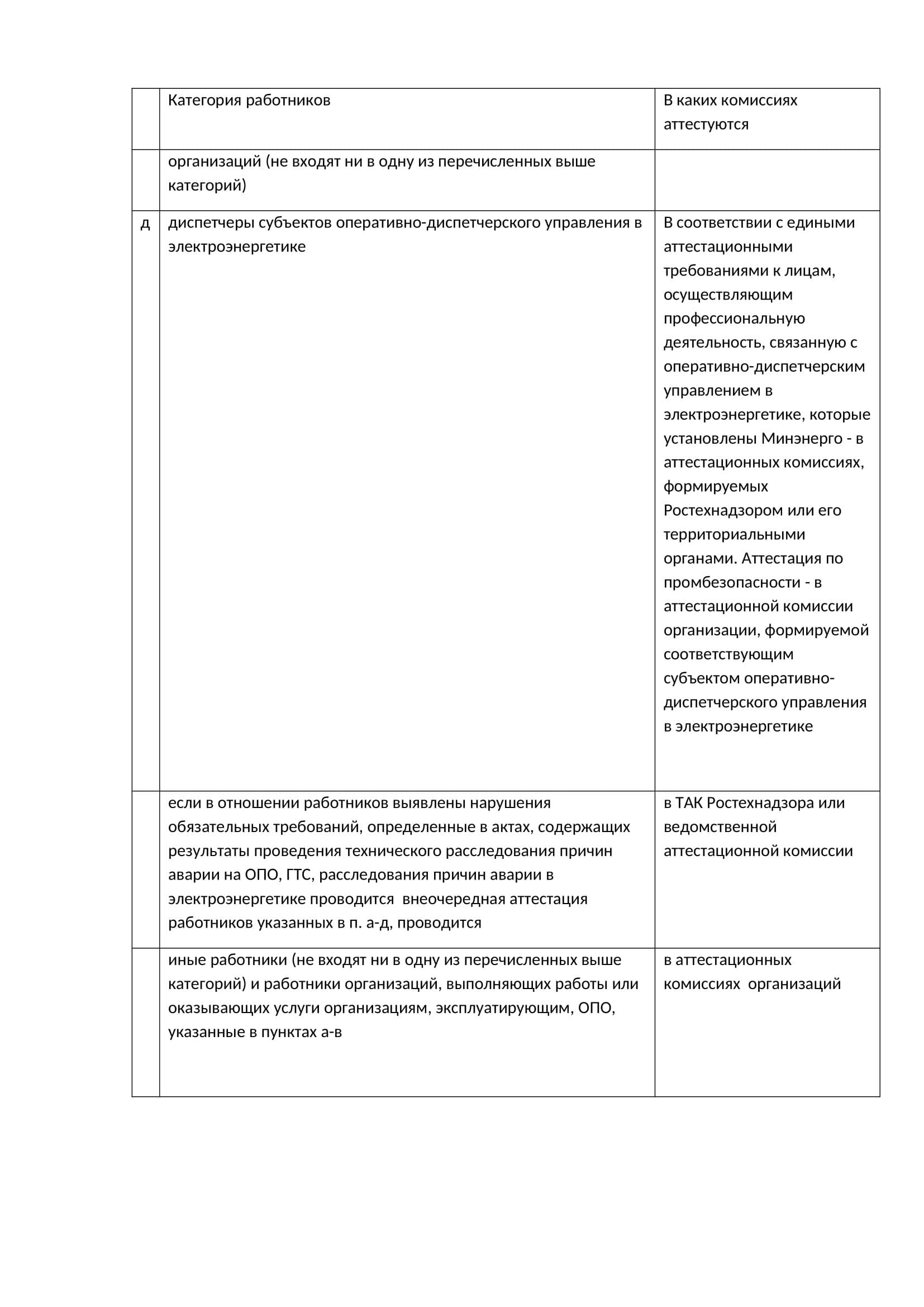 Категории таких работников определяются Правительством Российской Федерации ( п.2 Положения об аттестации в области промышленной безопасности, по вопросам безопасности гидротехнических сооружений, безопасности в сфере энергетики, утвержденного Постановлением Правительства РФ от 25.10.2019 г. № 1365 «О подготовке и об аттестации в области промышленной безопасности, по вопросам безопасности гидротехнических сооружений, безопасности в сфере электроэнергетики»).