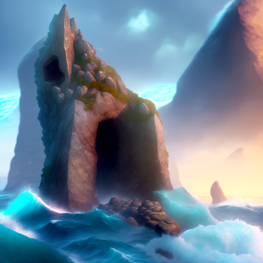 Пошатываясь, встаю и осматриваюсь. Нас окружают голые скалы, о которые бьются бесконечные тёмные волны. Воет порывистый ветер, сбивая меня с ног. За спиной Дрейка вижу колоссальных размеров пик, в котором на огромной высоте зияет чёрный провал пещеры.
