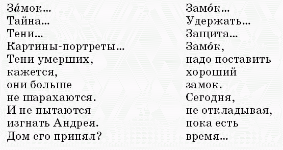 А Наташа, наверное, стряпает что-то вкусное. Или раскрашивает очередную досочку, или… Мысли Андрея вернулись на полшага назад . К дому-за́мку. К дому-замку́. И потекли параллельно.