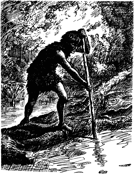 Но пора вернуться к У-Наку, который давно всматривался в воду, поджидая добычу. Рыболовы тех отдаленных времен уже знали удочку; но при охоте на крупную рыбу главным орудием служило им копье с заостренным кремневым наконечником.
