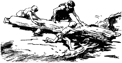 Поведение мальчишек на воде всегда одинаково, живут ли они в наше время или жили пятнадцать тысяч лет назад. В заливе начались веселые битвы. Каждый старался угодить концом своего бревна в бревно товарища, чтобы сбить пловца в воду. Сколько было крика, шума смеха! Отважным бойцам много раз в день приходилось испытывать радость победы и горечь поражения.