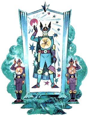 У менвитов есть Верховный правитель Гван-Ло, он ещё и колдун. Он обладает гипнотическим повелевающим взглядом и может приказать любому сделать то, что захочет. И только человек начнет протестовать, как Гван-Ло посмотрит ему в глаза – и тот сразу умолкнет. Это колдовское искусство Верховный правитель унаследовал под страшным секретом от своих предков и обучил ему менвитов. Он ведь сразу обратил внимание на то, что арзаки – талантливый народ.