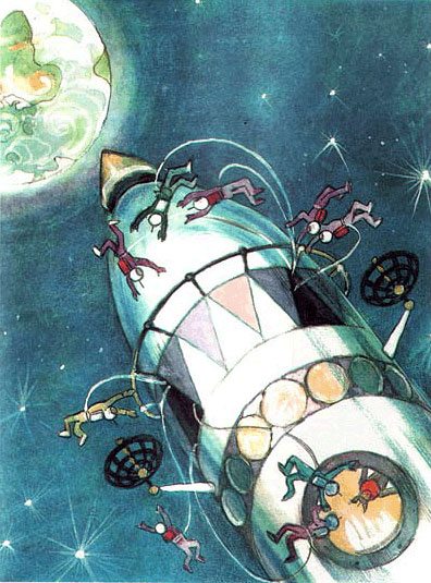 Но чужестранные звездонавты даже не замечали полёта. Для них время остановилось с того момента, когда почти весь экипаж корабля был приведён в состояние анабиоза – так называют длительный сон при глубоком переохлаждении – и погружён в специальные отсеки полётного сна. Там звездонавты безмятежно спали добрых семнадцать лет.