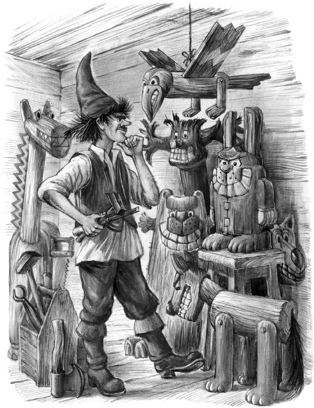 – Послушай, ты, наглая птица! – свирепо заорал столяр. – Довольно я ломал язык, полностью выговаривая твоё проклятое имя! Если не хочешь отвечать, убирайся в лес и сам добывай себе пищу!
