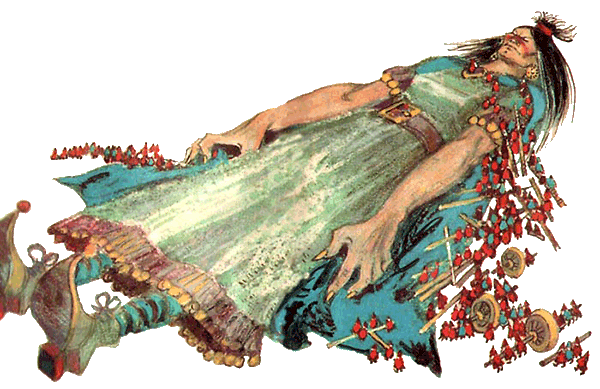 И, о чудо! На земле во весь свой гигантский рост распростёрлась колдунья Арахна. Она заснула глубоким сном, которым ей отныне было суждено проспать пятьдесят веков!