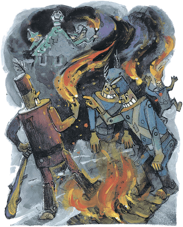 – Эти деревянные люди должны бояться того же, чего боюсь и я, – задумчиво сказал Страшила, – огня. А поэтому надо заготовить на стене побольше соломы и держать под руками спички.